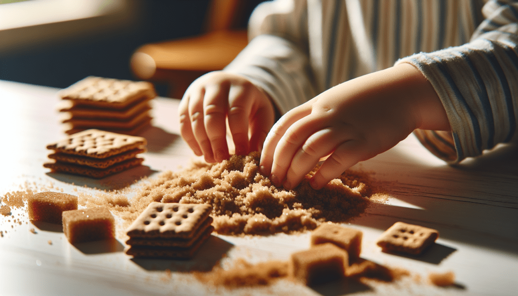 Have you ever had reservations about letting your child play with Kinetic sand or real sand indoors? Creating edible sand using graham crackers is a fun and easy way to allow the opportunity for indoor sand play. Here’s a simple recipe to make graham cracker sand: